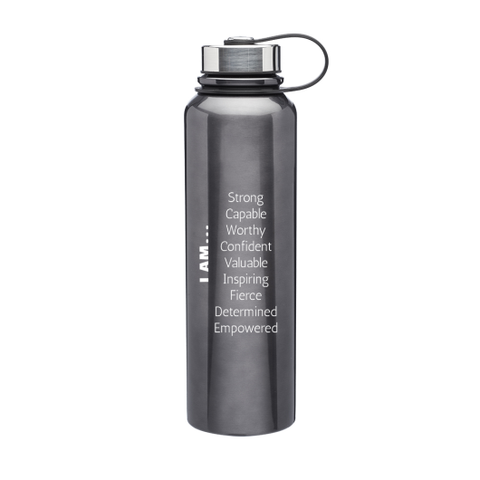 Stay hydrated all day with the "I AM" hydration bottle! Made of durable stainless steel, this mega sized bottle is insulated to keep your cold drinks cold. With the power of I AM, you'll have the support you need to conquer any challenge. Stay refreshed and empowered with every sip. What is your "I AM" statement?